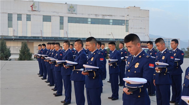 在鲜红的党旗和国旗前,指战员们高举右拳庄严宣誓,铿锵誓词响彻苍穹,深切缅怀在“九一八”事变、抗日战争中牺牲的先烈,深刻表达了每一名指战员和共产党人的崇高理想和坚定信念。