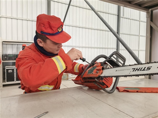 良好的装备性能是队伍战斗力的保证,队伍紧盯实战需要,从细节入手,从实处抓起,在“会管、会用、会修”上下功夫,使装备维护保养制度化、实效化、常态化,坚持落实“不搞形式,不走过场”的要求,对库室内存放的防火灭火、水域救援等装备进行“拉网式”检查排查,及时排除各类故障隐患,确保装备性能完好。指战员严格按照操作规程,对装备进行了补充燃油、更换零件、擦拭污垢等全流程保养。针对滤芯清洁、链条校准、电路检修等关键环节,一丝不苟、精益求精。